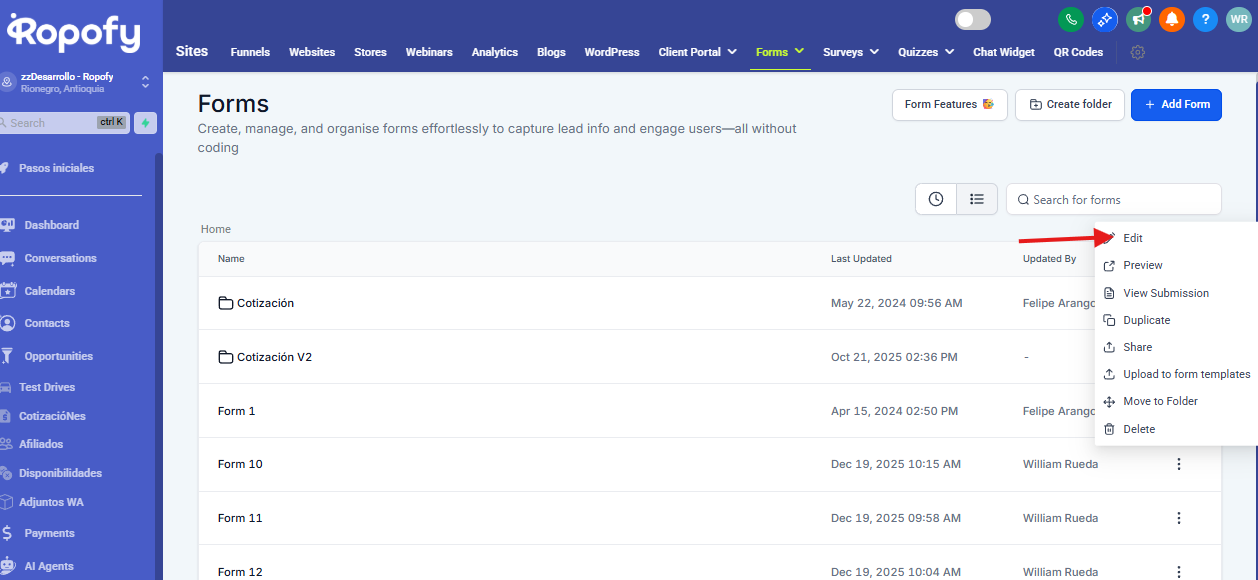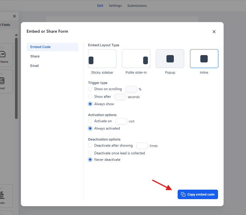 Después de obtener el código, ahora puedes pegar el código del formulario/encuesta en tus embudos o sitios web.