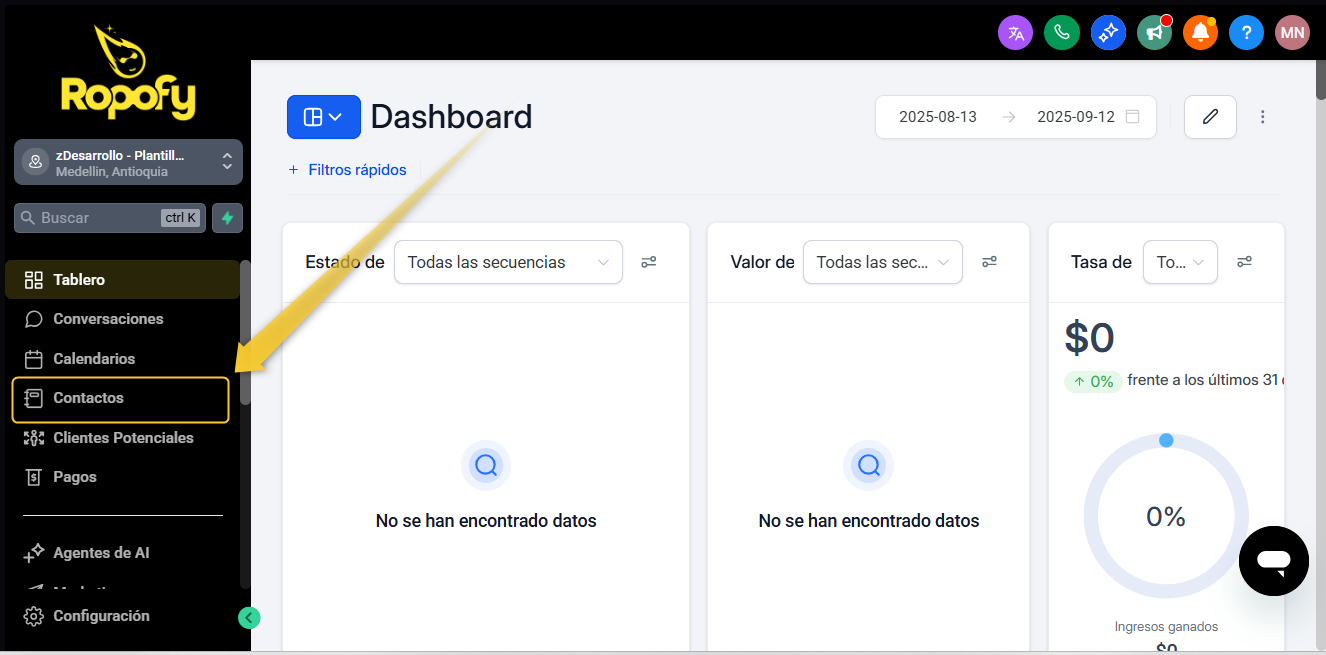 Esta guía tiene como objetivo explicarte paso a paso cómo otorgar acceso manualmente a uno o más cursos de la academia a un usuario, directamente desde su perfil de contacto dentro de Ropofy. Esta acción es útil cuando un cliente informa que no puede acceder a un curso, ya sea por fallas técnicas, errores de asignación o registros incompletos.