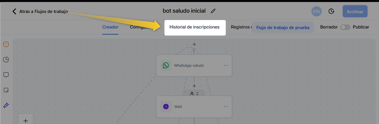 3. Haz clic en “Historial de inscripciones” en la parte superior del flujo.