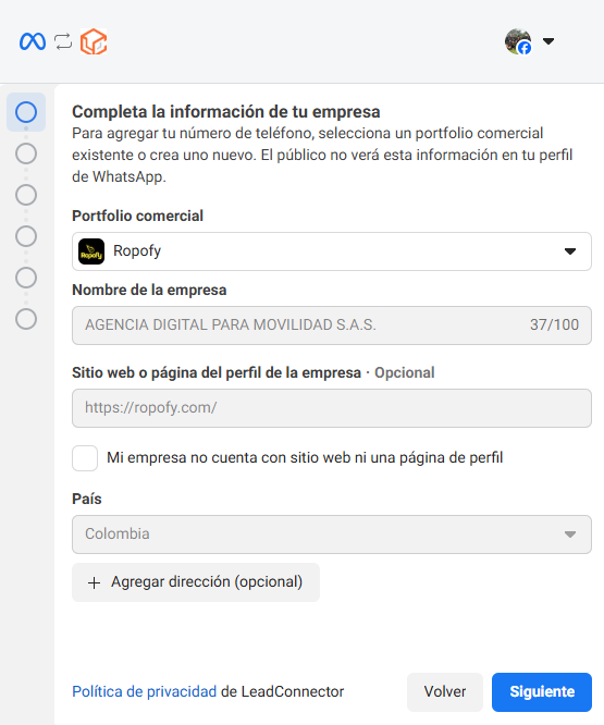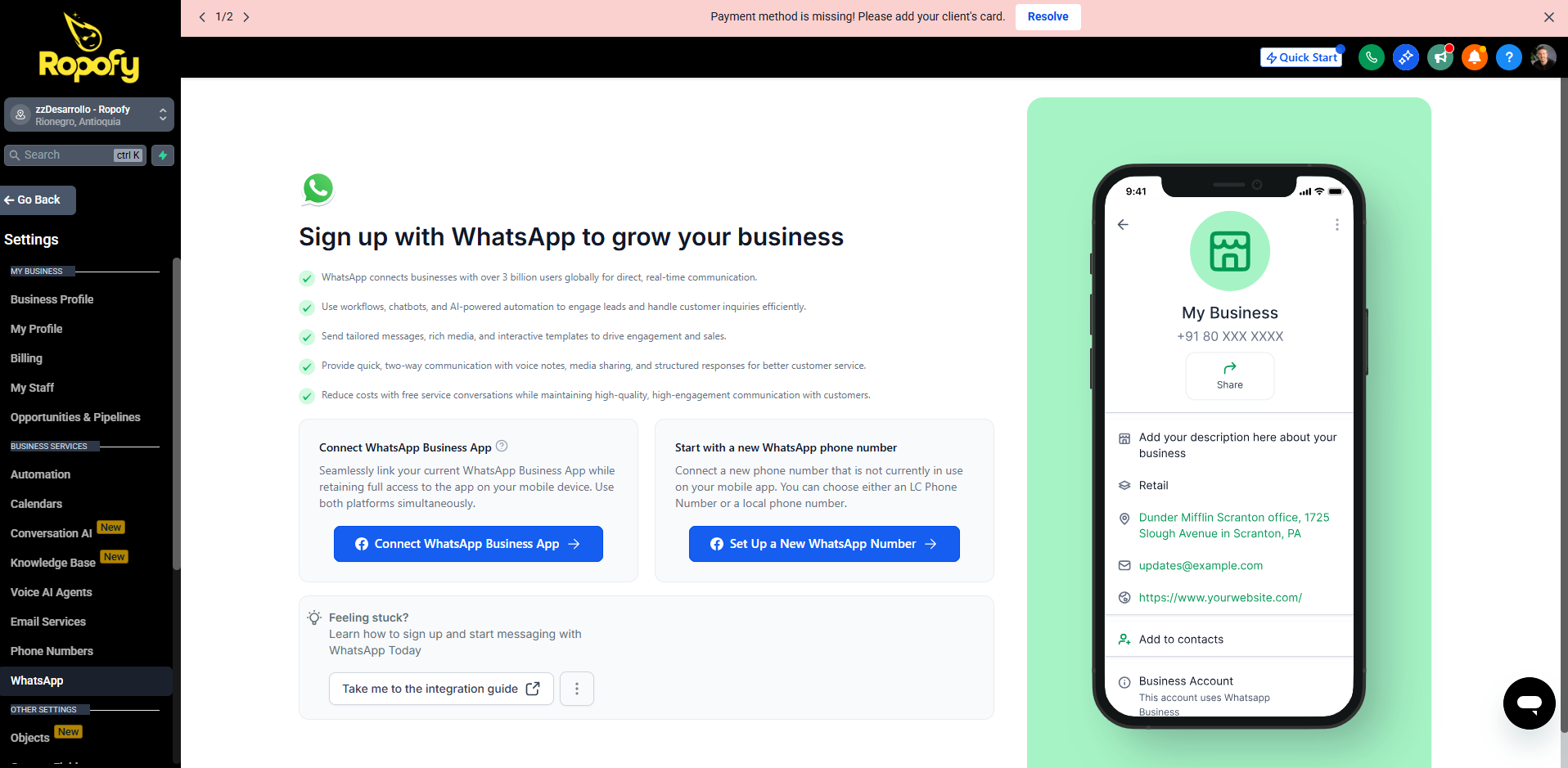 3) Vincular WhatsApp Business App con Ropofy