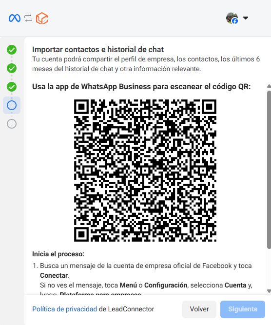 7. Llegará un mensaje de facebook a la aplicación de Whatsapp Business donde puedes ingresar a leer el código QR.