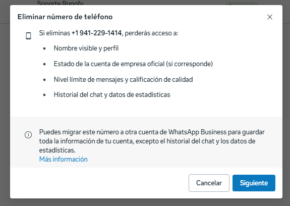 Objetivo: Desconectar un número de WhatsApp Business API (Cloud/API de Meta) usado en Ropofy y volver a registrarlo como WhatsApp Business App en un celular.
