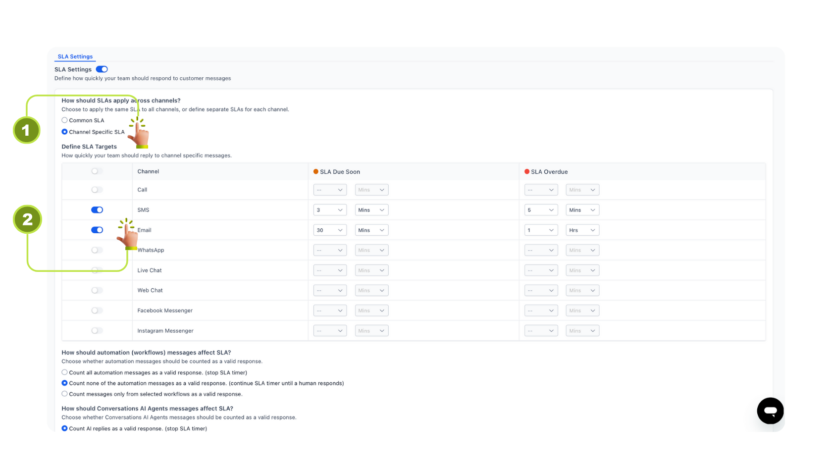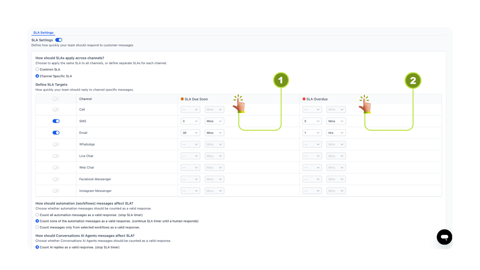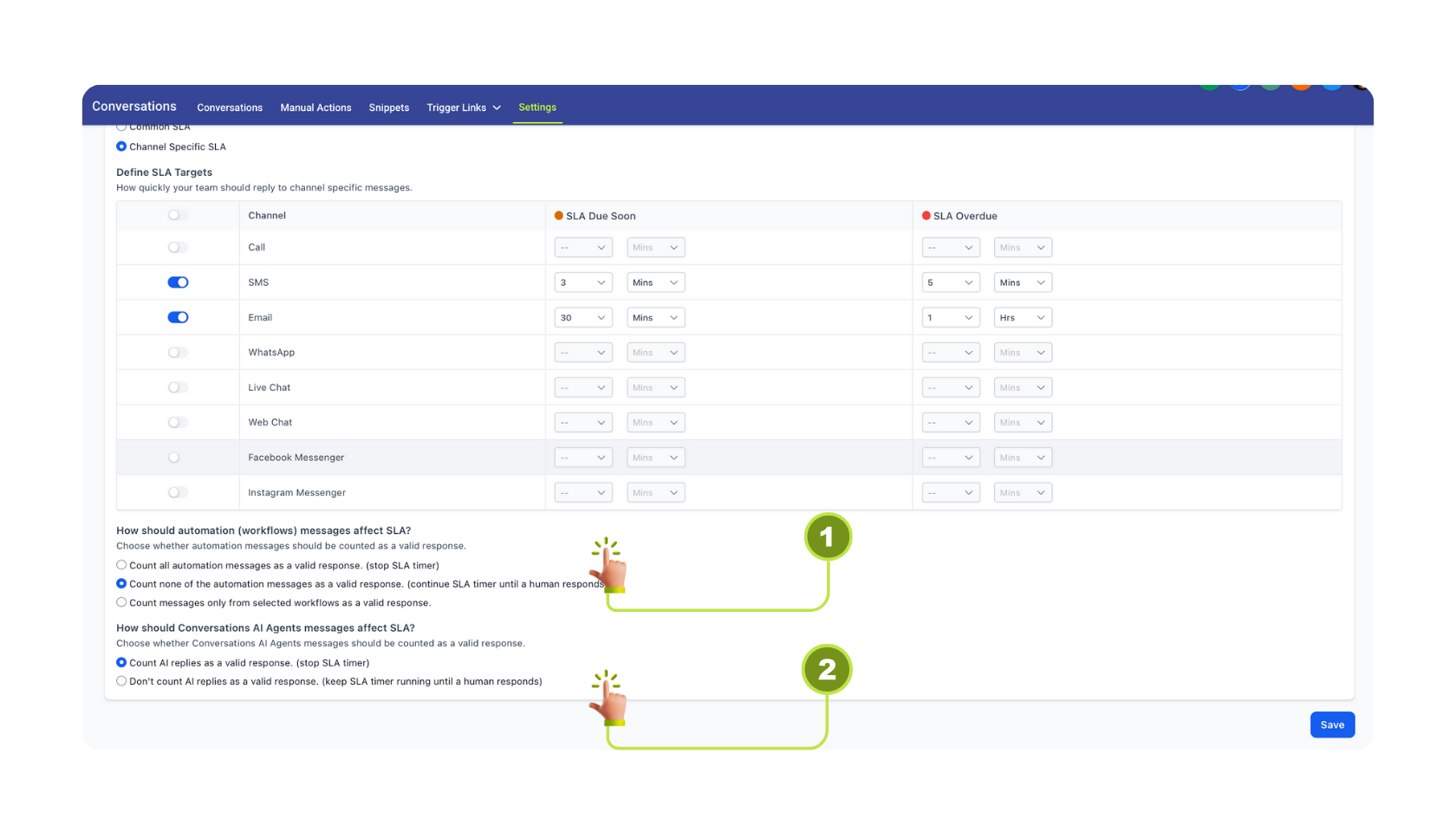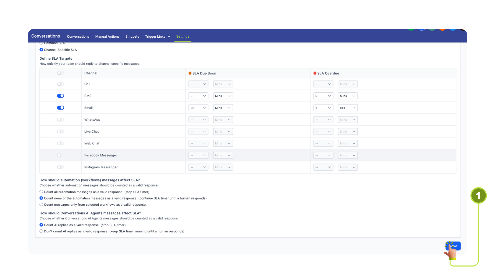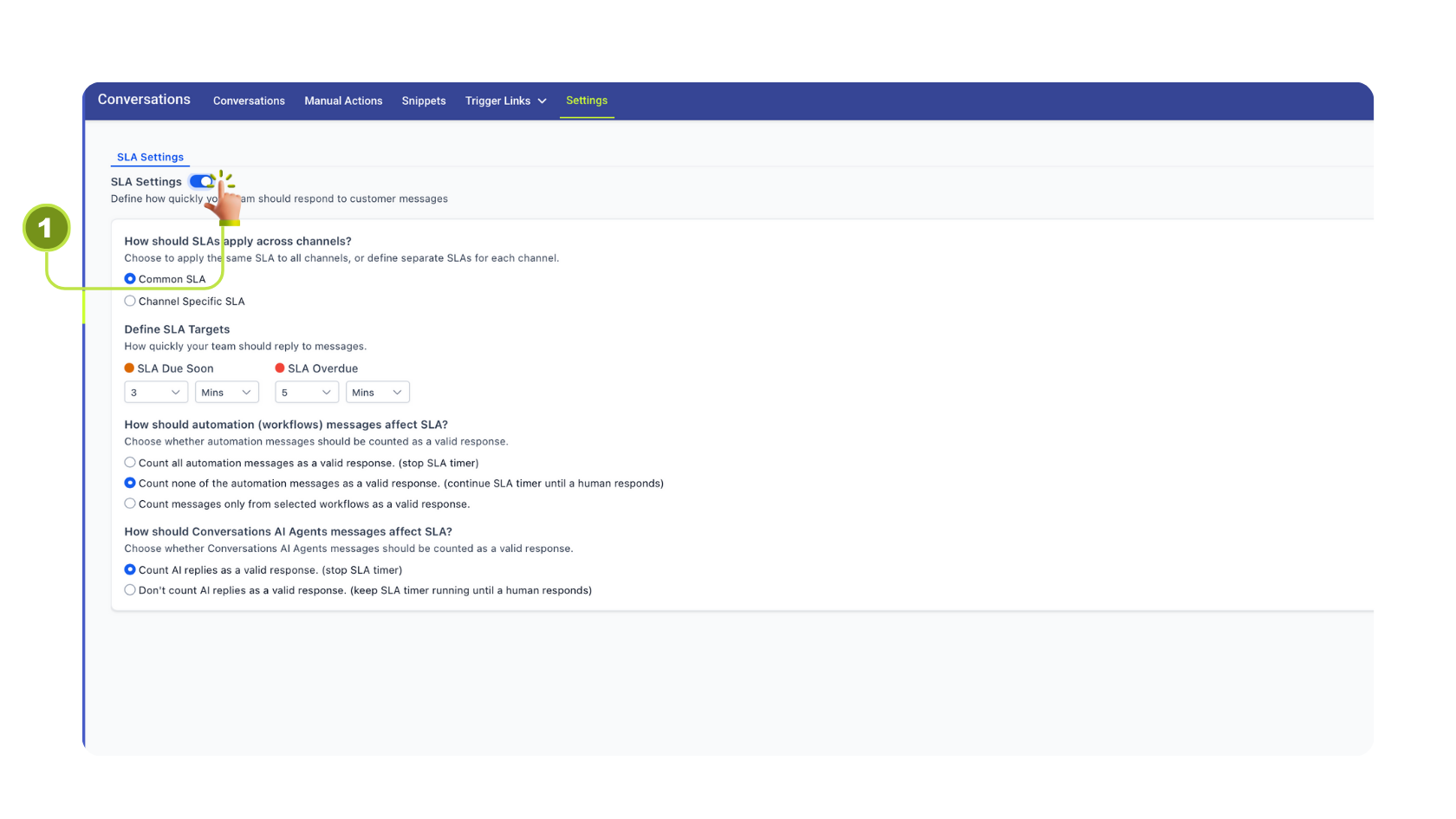 2. Ve a Configuración → SLA de Conversaciones y activa la funcionalidad.