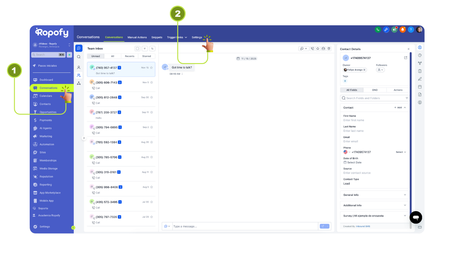 1. Entra al módulo Conversaciones y da clic en 'configuración'