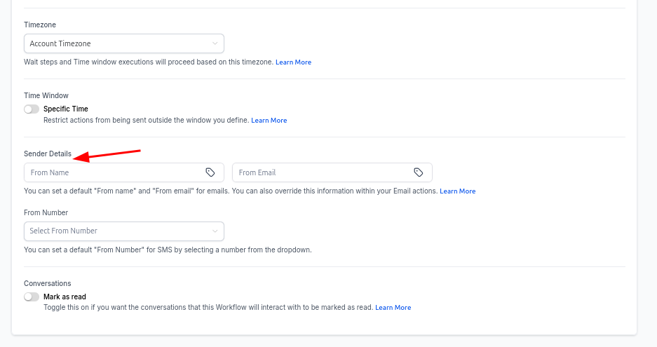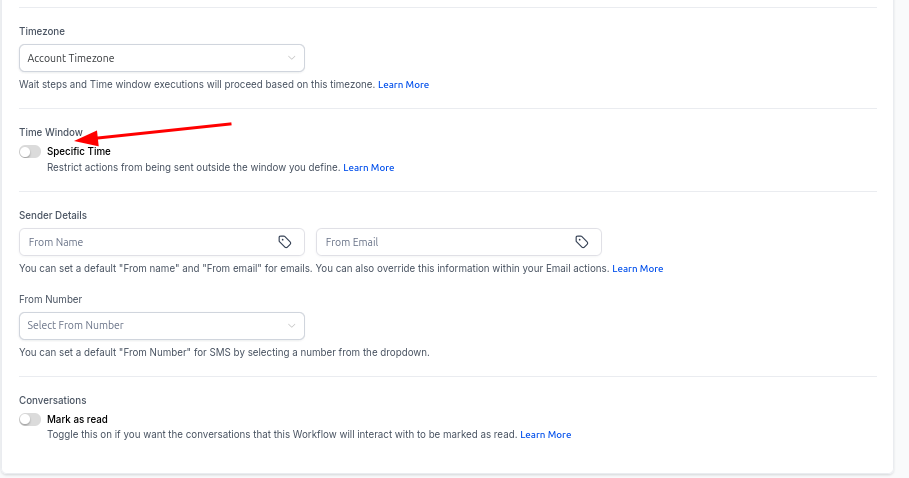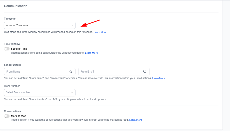 - Zona horaria del lead/contacto: Acciones se ajustan automáticamente a la zona horaria de cada contacto (opción avanzada recomendada para audiencias internacionales).