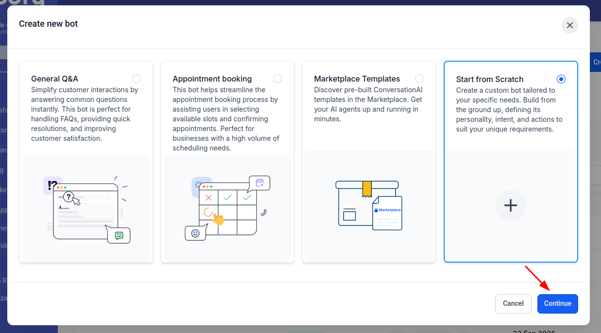 Descripción: Accede a plantillas conversacionales preconstruidas en el Marketplace.
