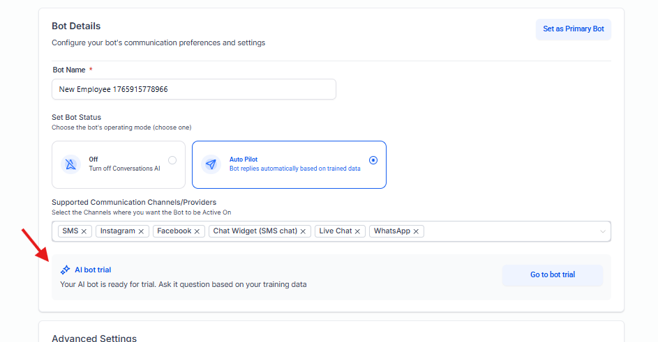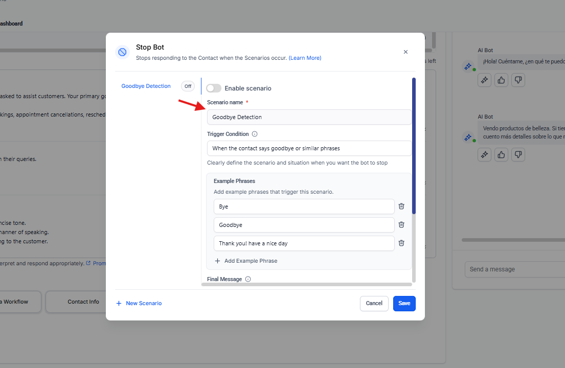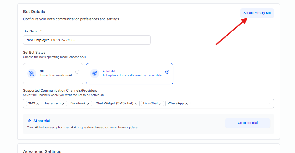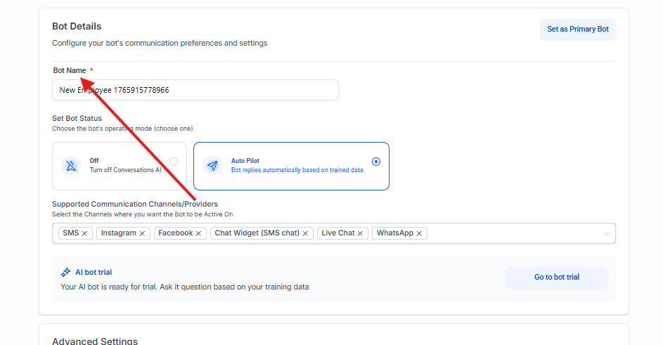 | Agent Name | Nombre asignado al bot/agente. |