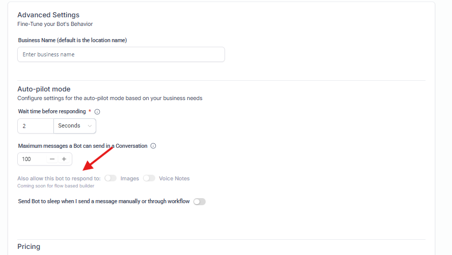Uso recomendado: Para usuarios que desean un control detallado sobre el comportamiento del bot mediante lenguaje natural, sin necesidad de un editor visual.