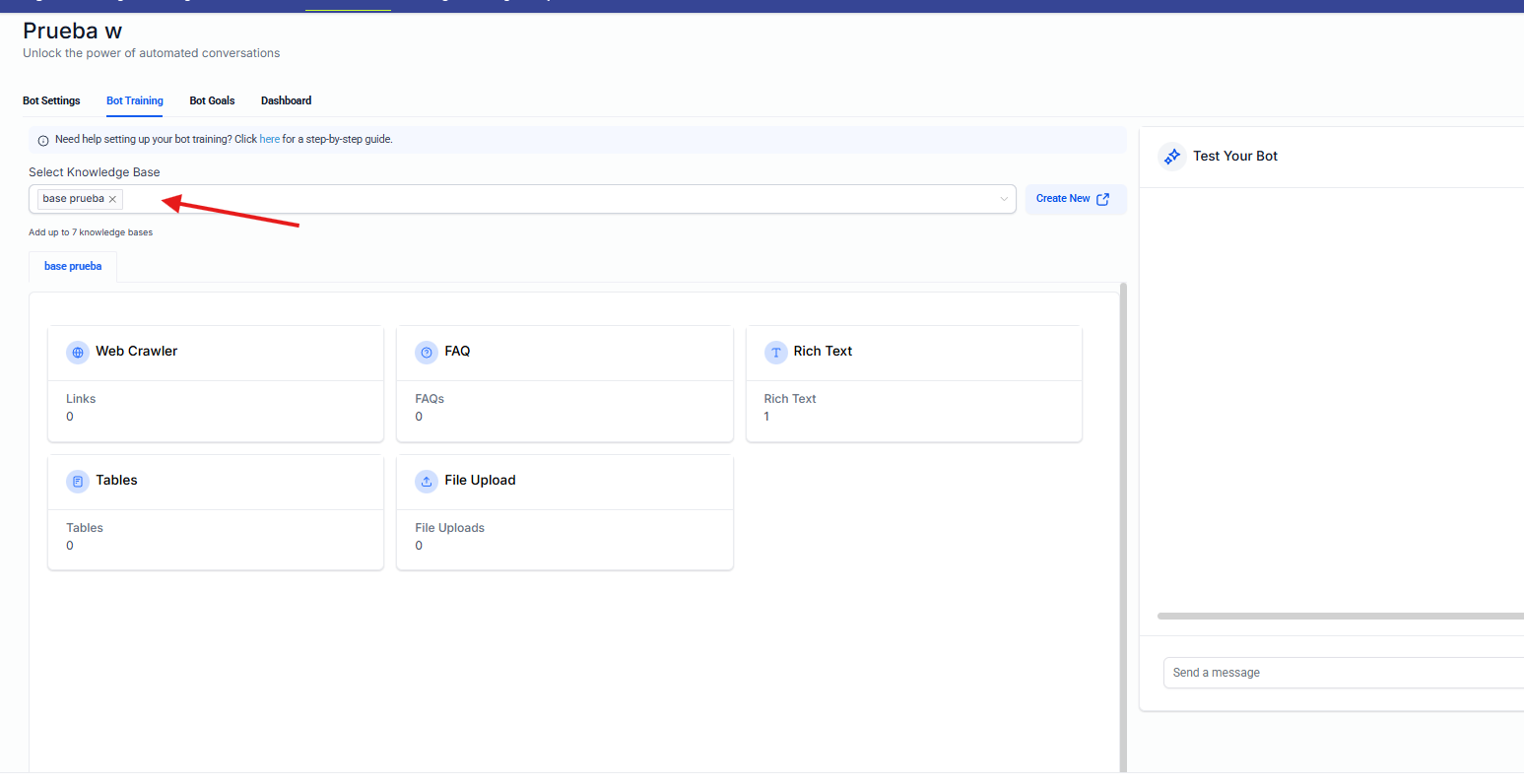 Selected Bot: bot que recibirá la conversación.