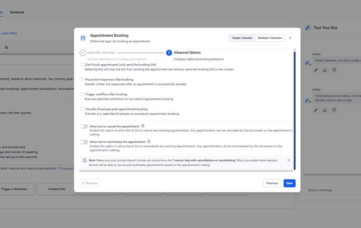 - Objetivos de múltiples pasos y reserva de citas