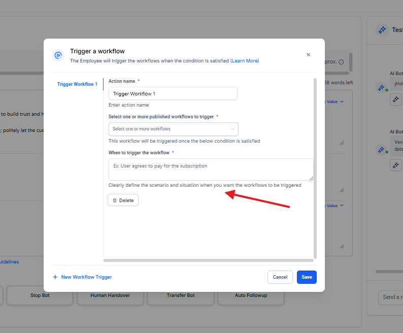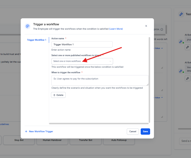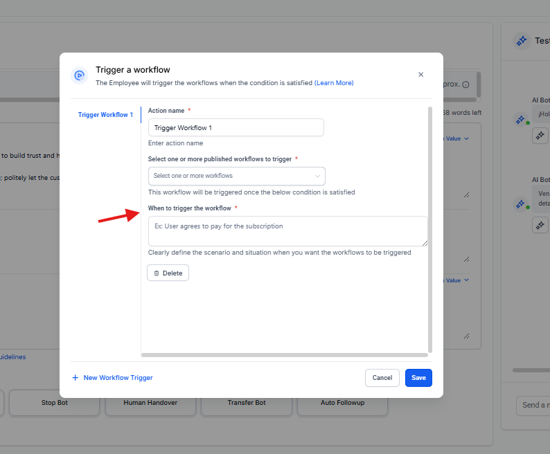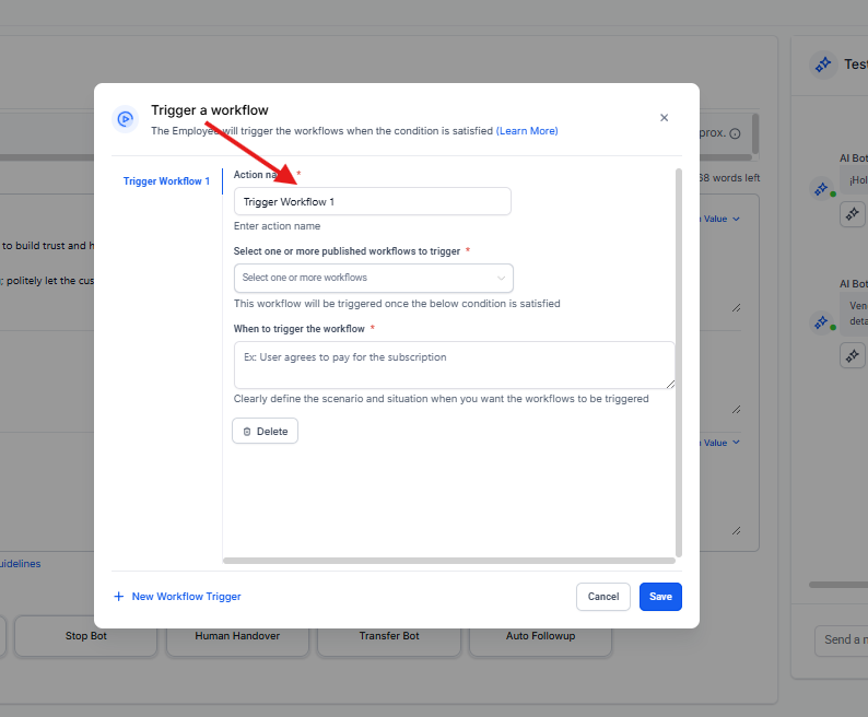 Trigger Workflow: Dispara un flujo de trabajo adicional en lugar de enviar un mensaje.