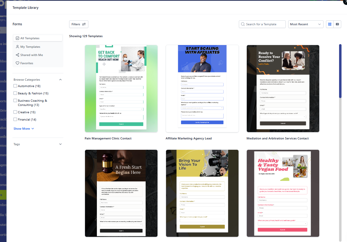 Estas plantillas están organizadas por categorías y casos de uso, lo que facilita acelerar la creación de formularios comunes como registros, contactos, encuestas o solicitudes.