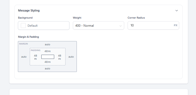 Estilos del mensaje, como: