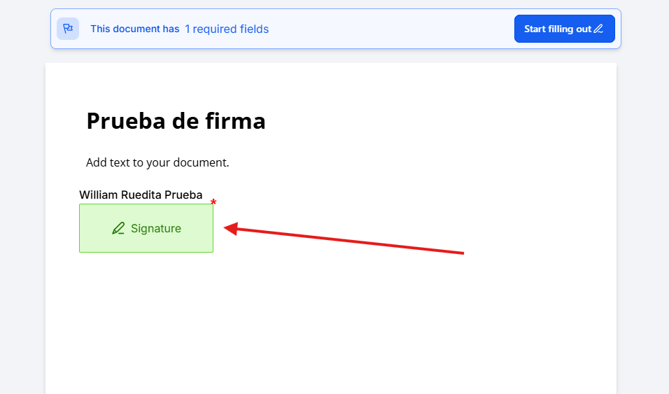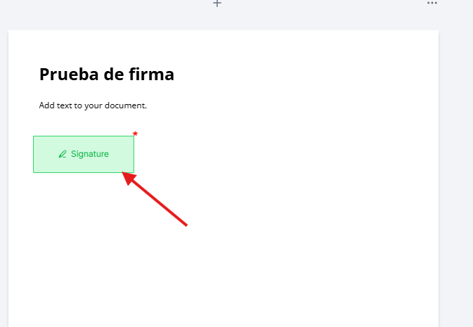 Este campo se añade desde el panel Add an Element, dentro de la sección Fillable Fields. Una vez agregado al documento, el sistema entiende que el archivo requiere una firma para poder completarse.