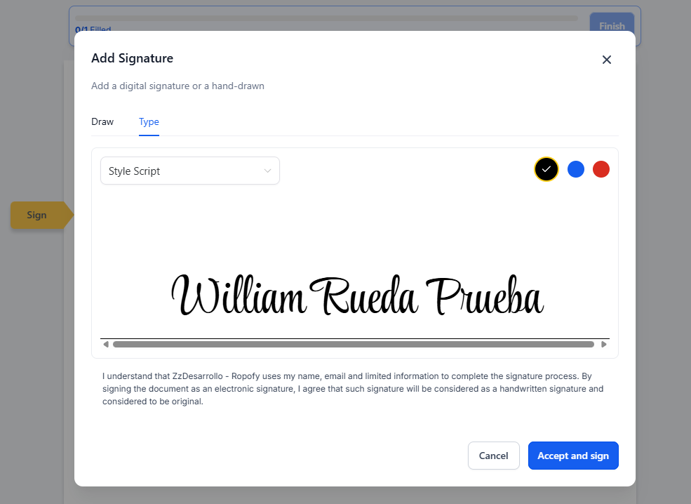 La firma queda asociada al documento como evidencia de aceptación.