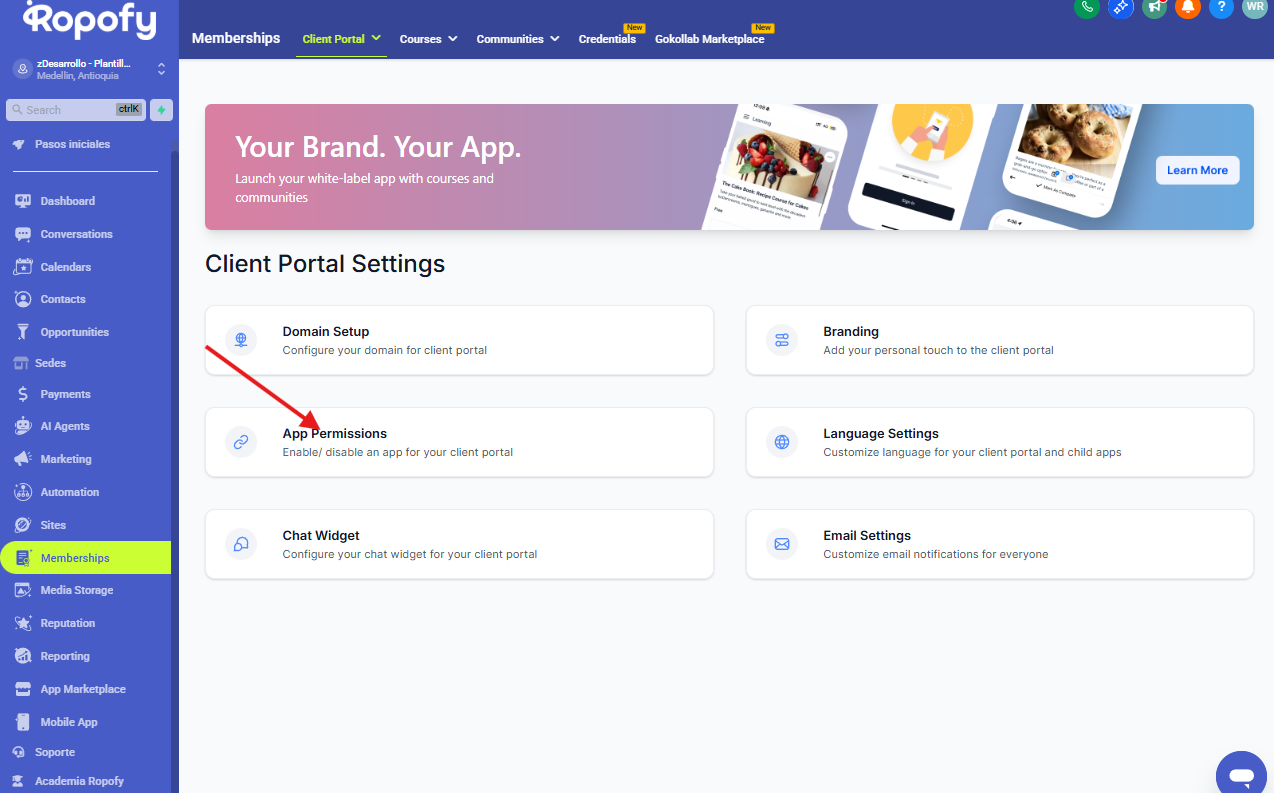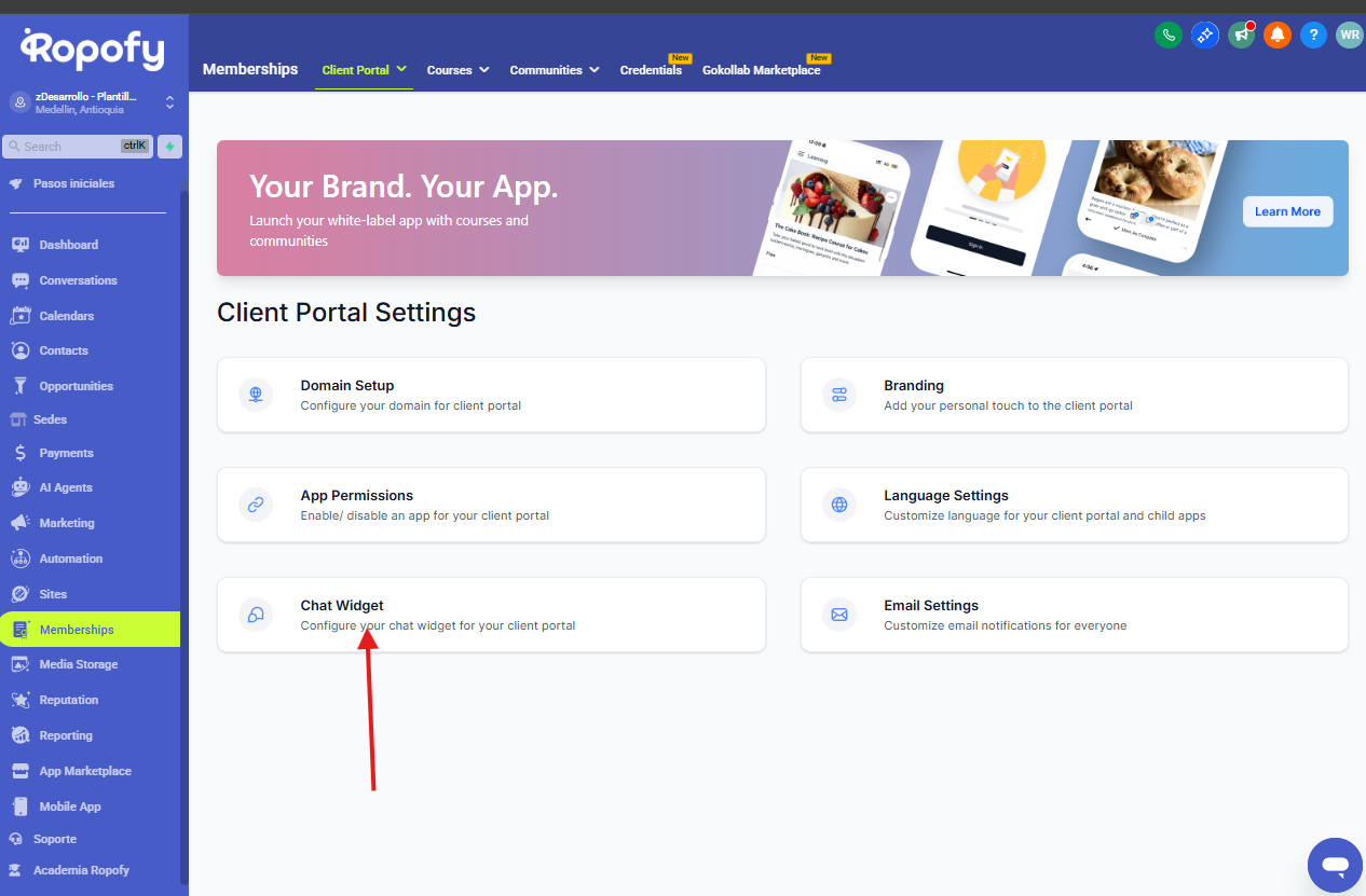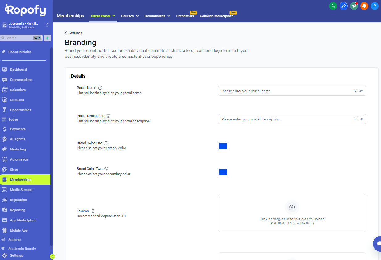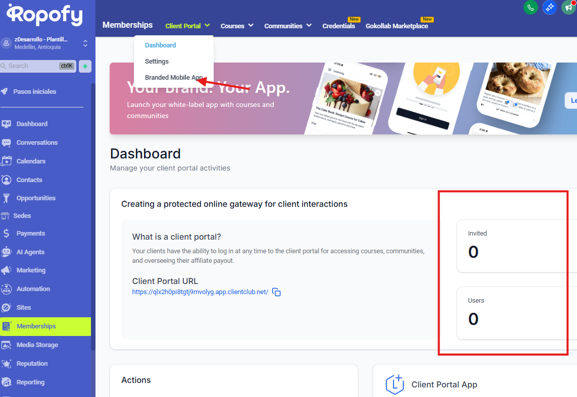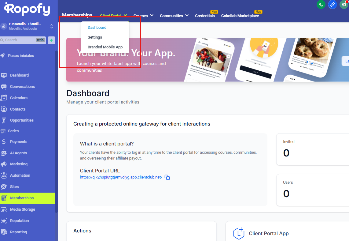El Client Portal funciona como la capa visible para el cliente final dentro del ecosistema de Memberships de Ropofy.