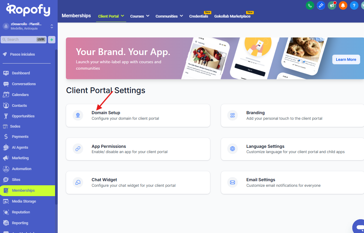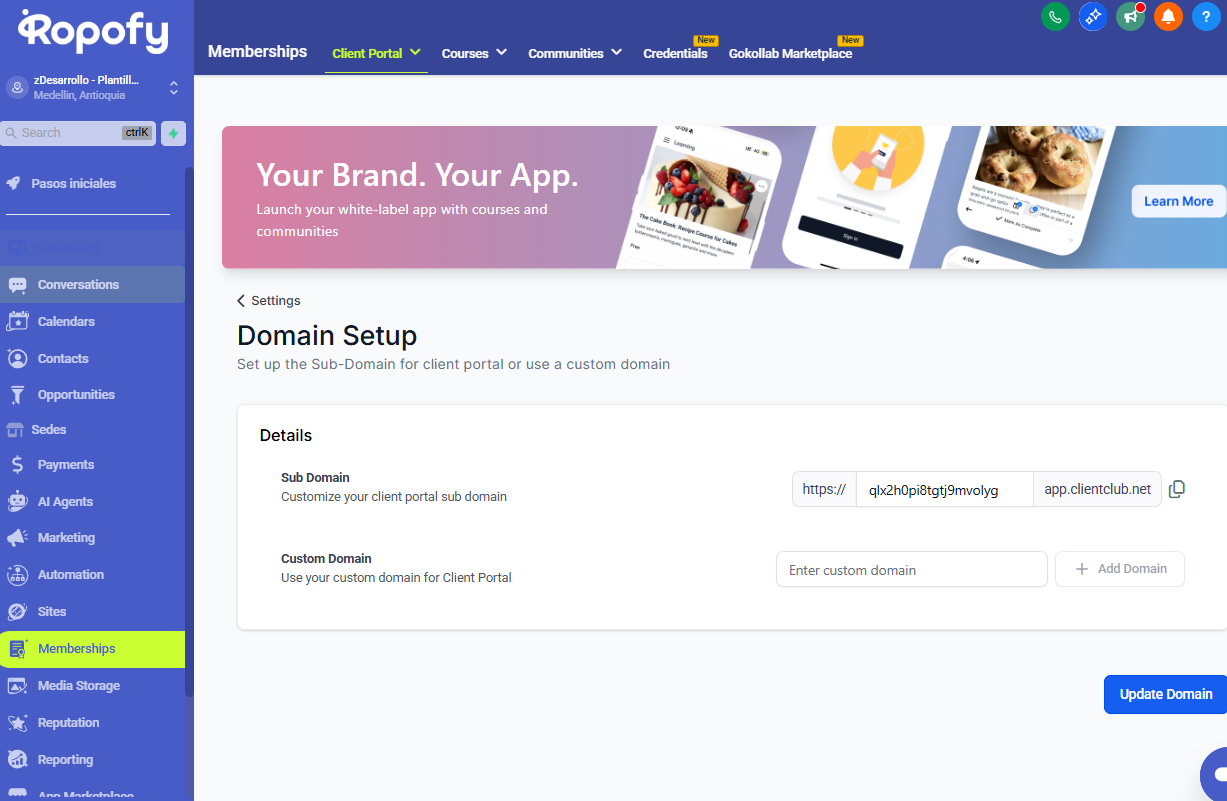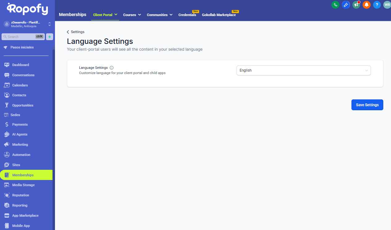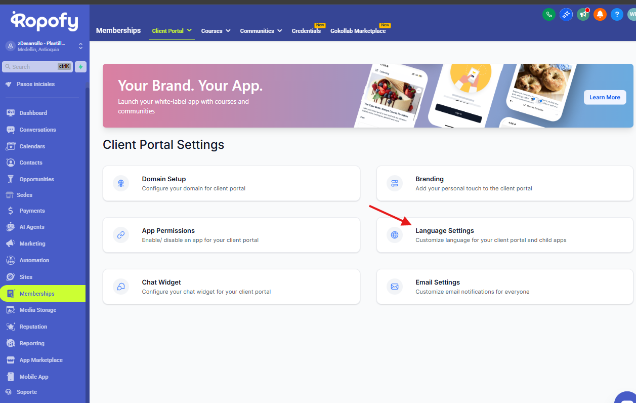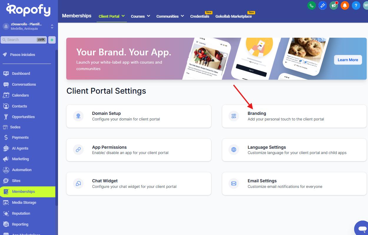 El Client Portal funciona como la capa visible para el cliente final dentro del ecosistema de Memberships de Ropofy.