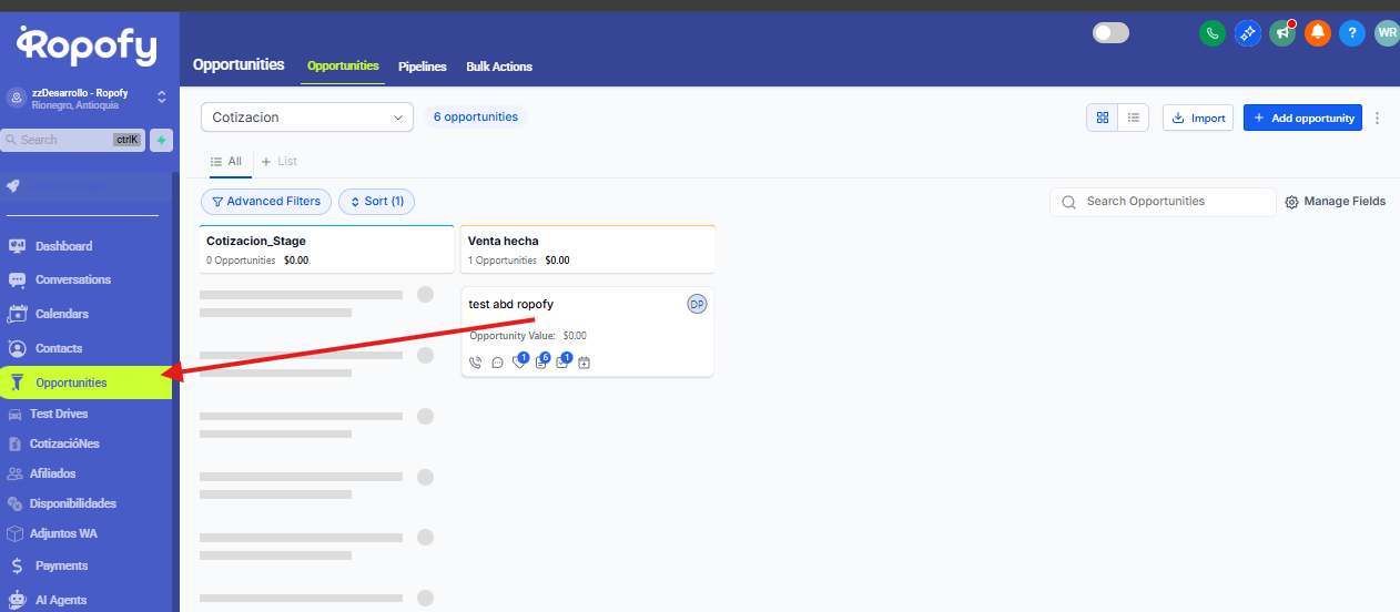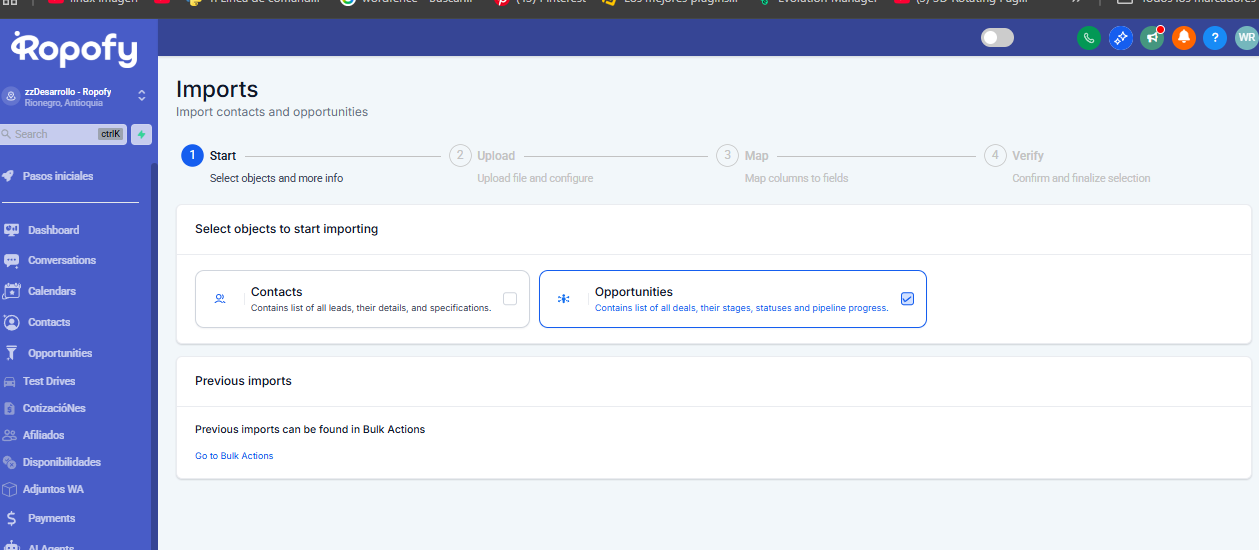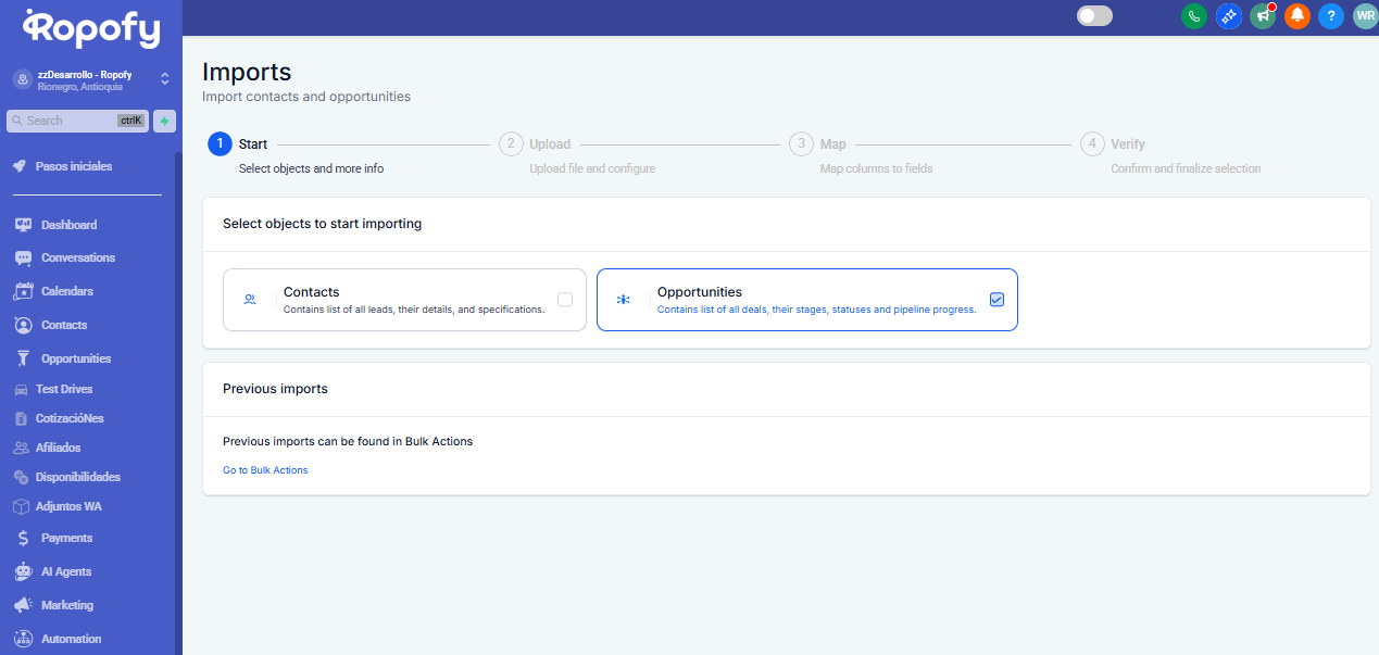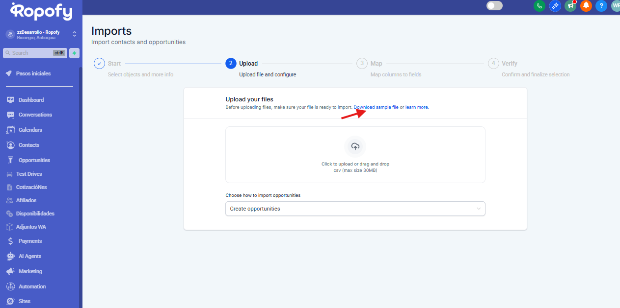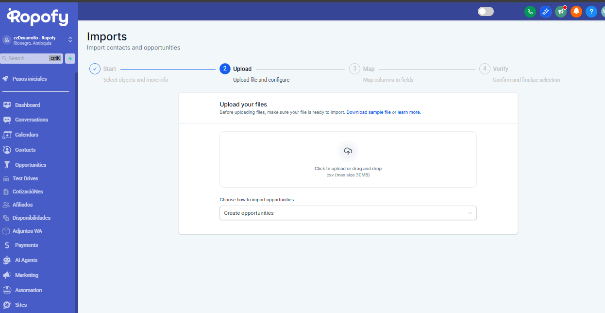 Guía paso a paso para importar Oportunidades en Ropofy