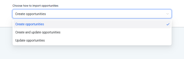 En la opción Choose how to import opportunities, selecciona una de las siguientes alternativas: