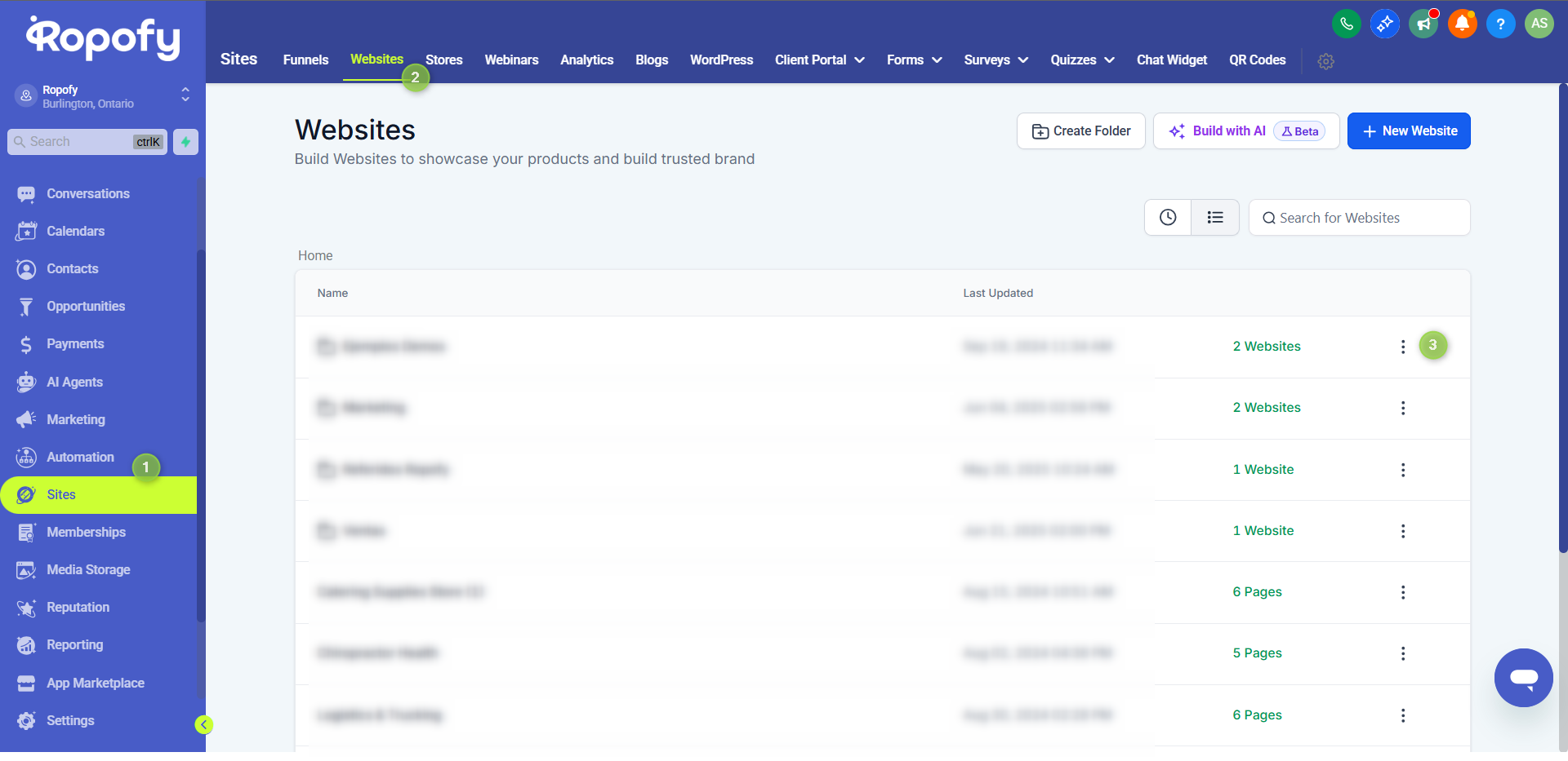 Sites > Websites