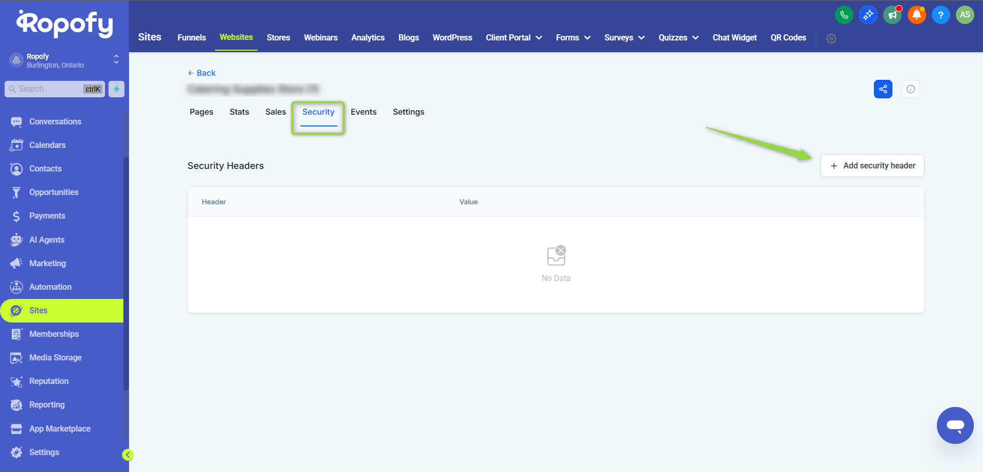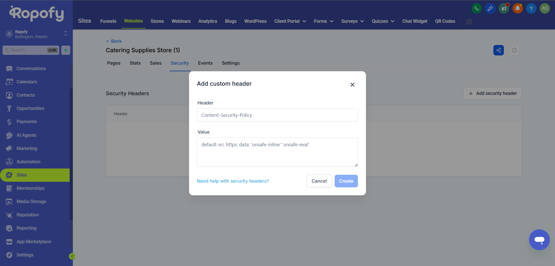 ✅ La buena noticia: en Ropofy es posible añadir estas cabeceras directamente desde la configuración del sitio.