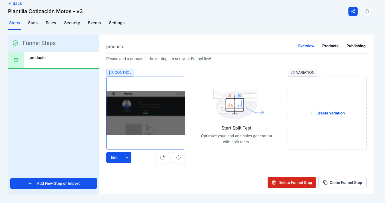 Selección: Elige la plantilla que desees y haz clic en el botón azul Edit -> Edit Page.