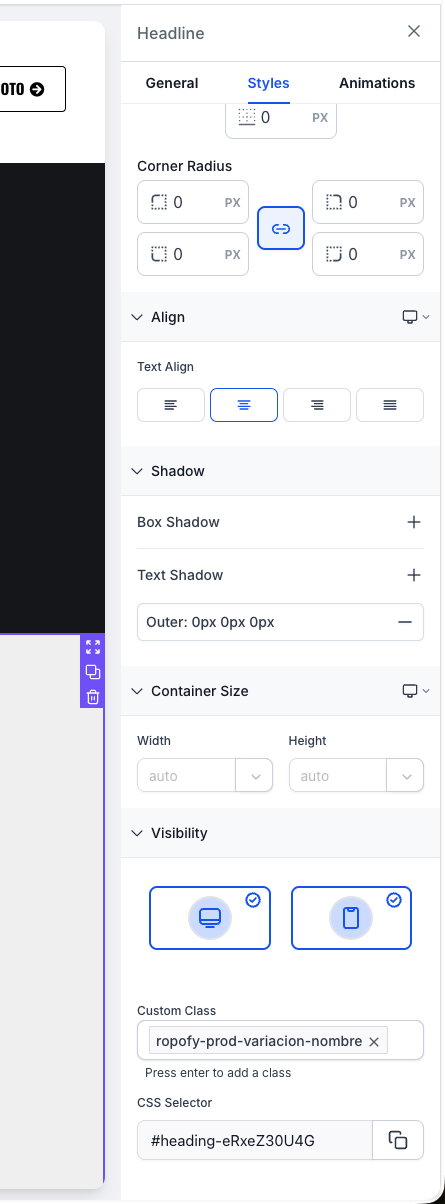 Ropofy incluye componentes complejos que se construyen solos. Para usarlos, crea un elemento de tipo "Column" o "Division" y asígnale una de estas clases: