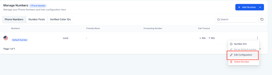 Haz clic en los tres puntos del número de teléfono de Twilio correspondiente.