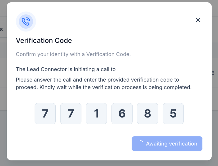 - Después de hacer clic en verificar, aparecerá una ventana emergente con un código de verificación y recibirás una llamada a tu número para verificarlo. Se te pedirá que ingreses el código de verificación.
